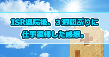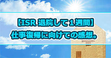 ISR退院後、3週間ぶりに仕事復帰した感想。ISR近況報告3週間ぶりに、仕事復帰しました。 お尻が痛いため、長時間座るのが辛いということはあるものの、 それ以外はさほど問題なく過ごすことが出来ました。 かなり気にしてた音問題ですが... -