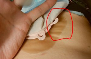 写真はまだ、ストーマを交換した直後だったので、そんなにシワになっていませんが、2,3日経つと結構悲惨な感じになります。