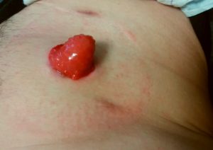 炎症を起こして痒い皮膚の上からまたストーマを装着するのは、なかなか勇気のいる事ですが、装着しないわけにもいかず、、、