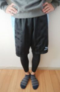 短パンの下にタイツみたいなやつを穿くイメージです。